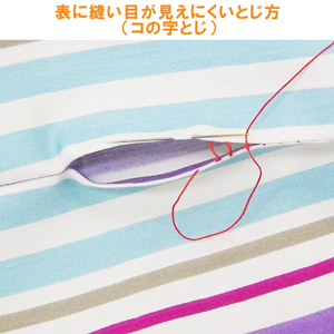 布の表に縫い糸ができるだけ出ないように手縫いで縫い合わせること。