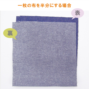 2枚の布(もしくは1枚を半分にして)を縫い合わせる場合、表同士を内側にして合わせること。